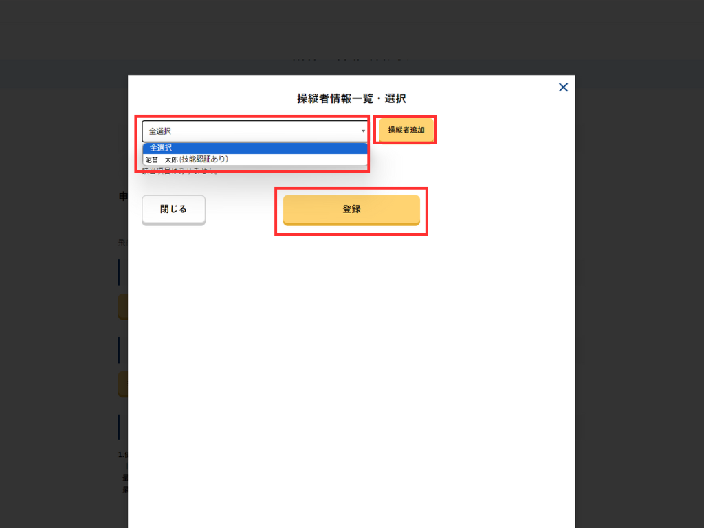登録記号と種類、型式、操縦者については、登録済み情報からプルダウンで選択可能です。