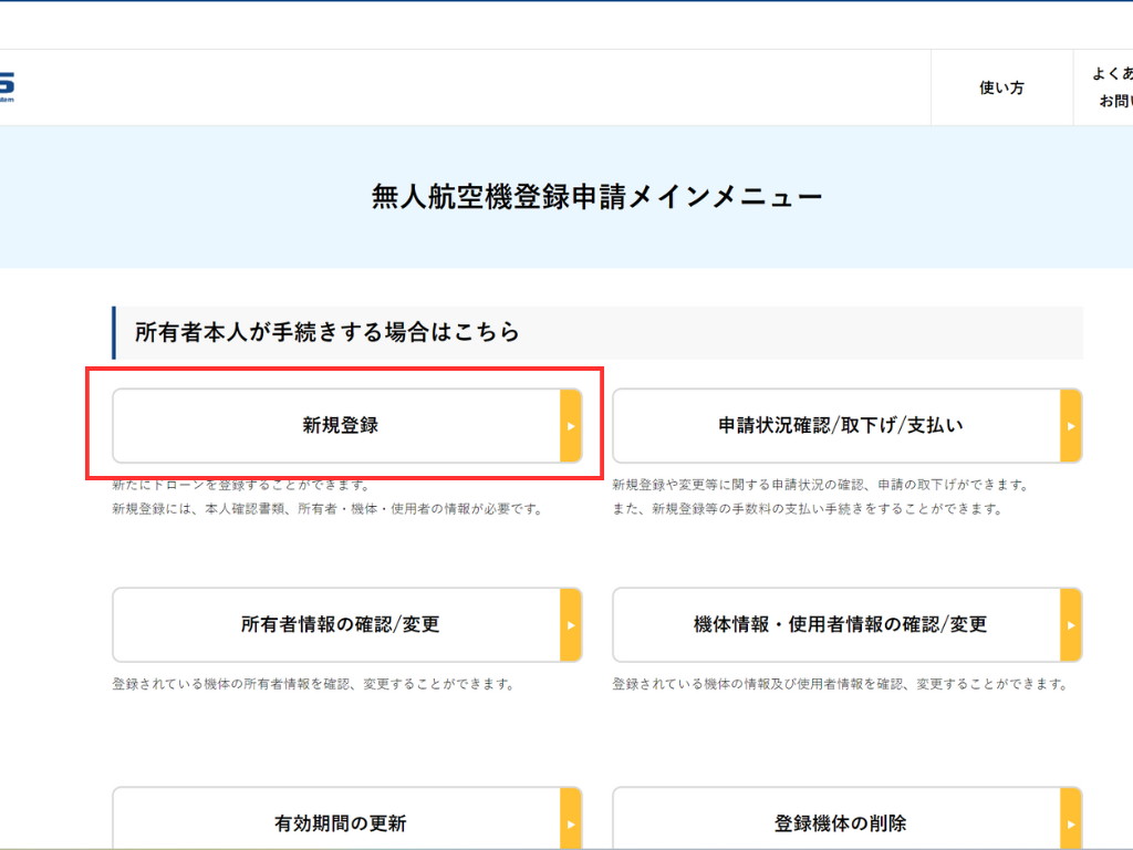 通報には、事前に機体登録や、操縦者登録を済ましておく必要があります。