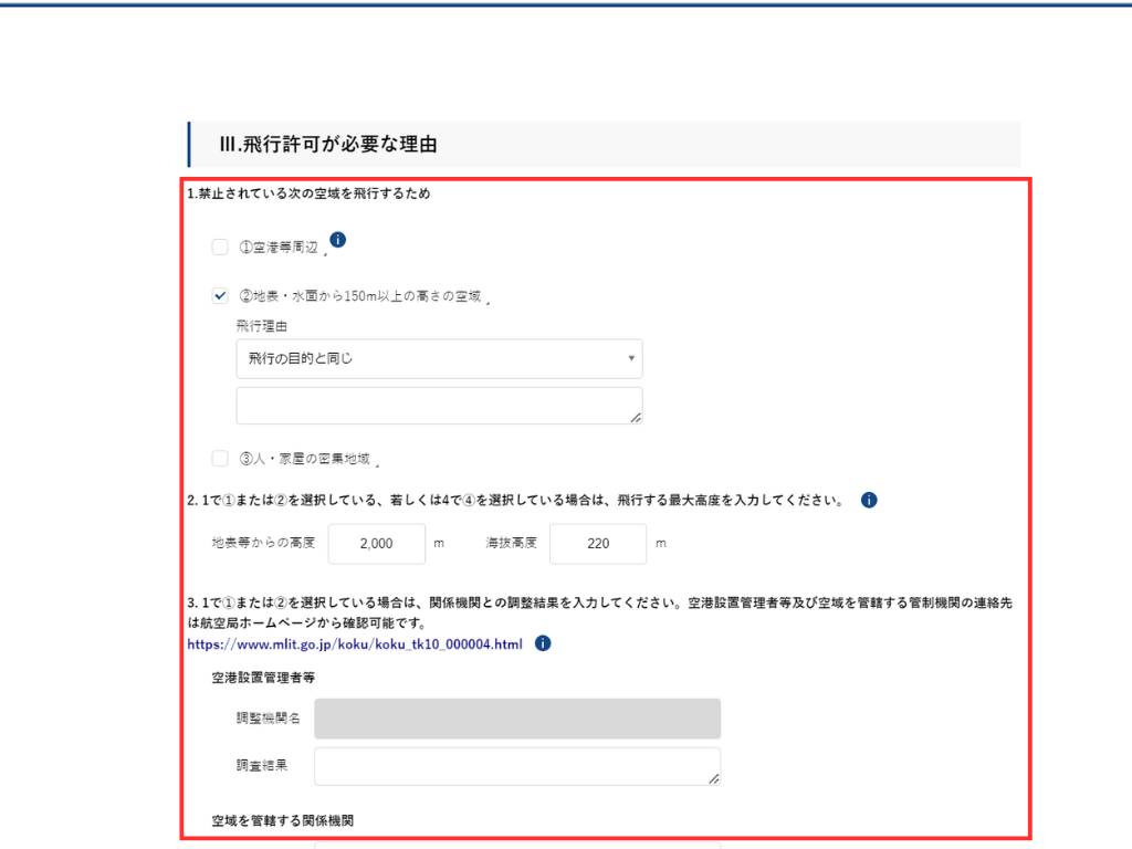 1.空港等の周辺、又は地上等から150m以上の高さの空域における飛行の許可の申請