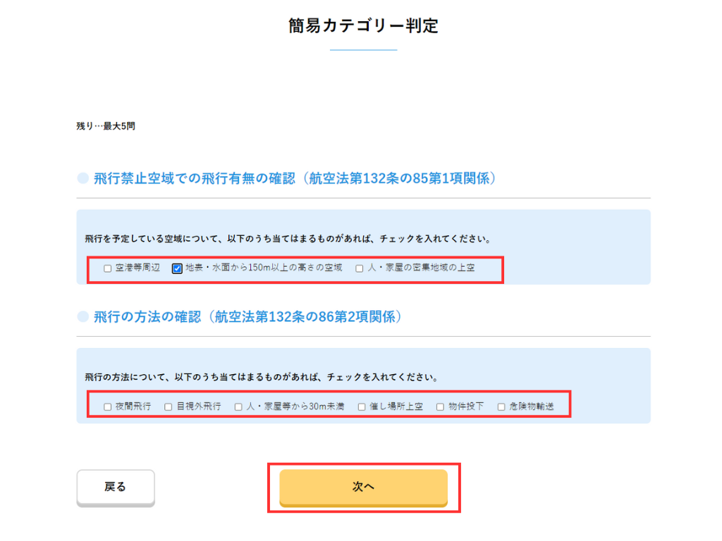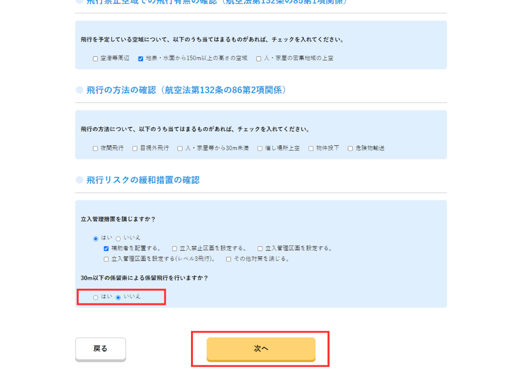 - 特定飛行であるか(DID・夜間・目視外・30m・危険物・物件投下)