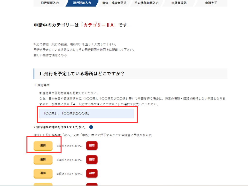 | 日時と経路 | 特定飛行の予定日時と飛行経路 |