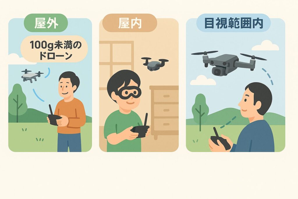 • 広い屋外の場所で、100g未満の模型のようなドローンを飛ばして遊ぶ