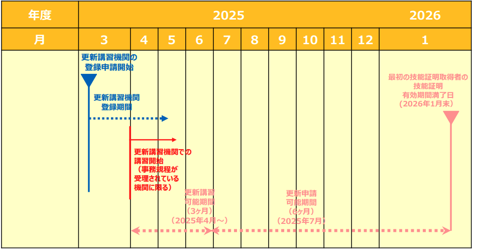 技能証明の有効期限が満了する日の6ヶ月前から申請が可能です。