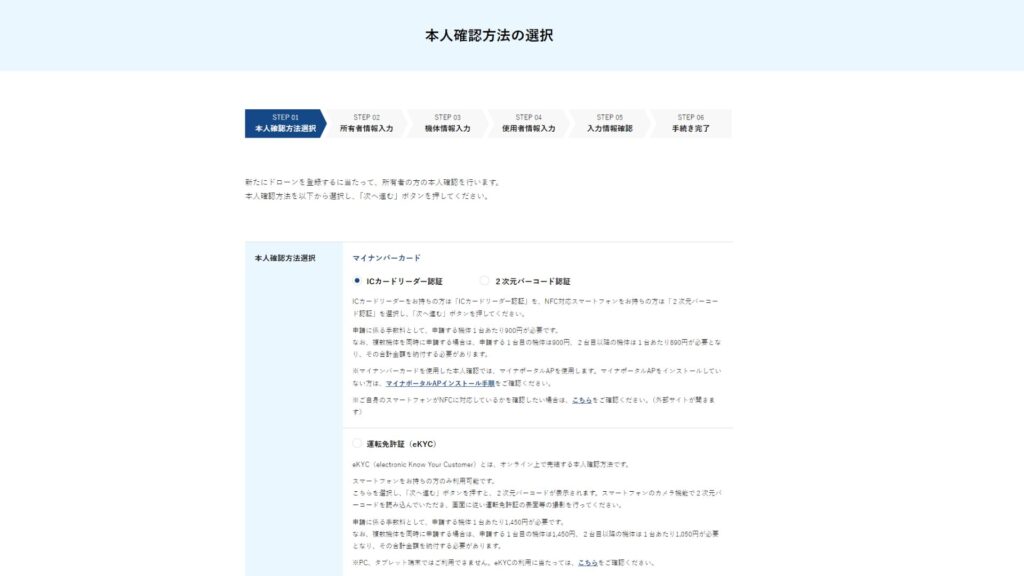 この記事では、実際の機体登録の入力画面を紹介しながら解説していきます。