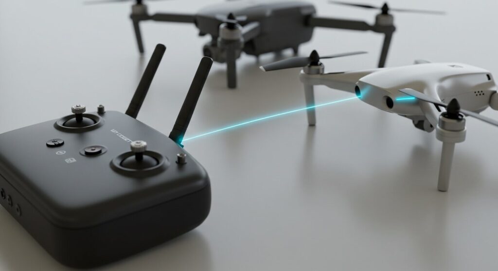 ドローンを操縦するためには、送信機と機体を接続(ペアリングまたはリンク)する必要があります。