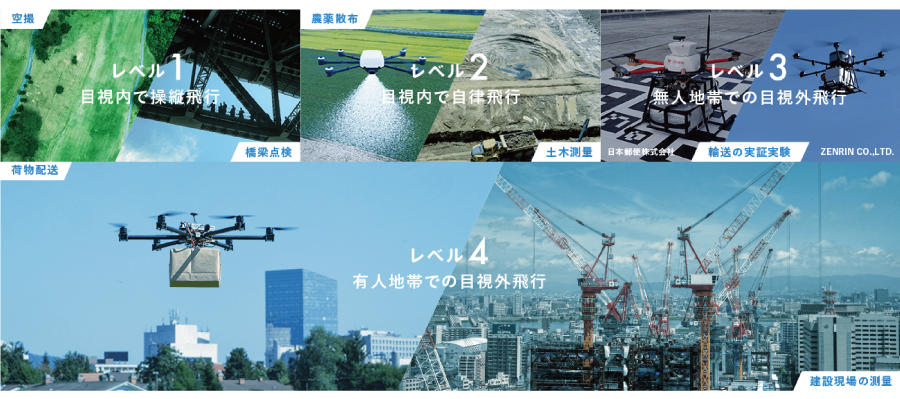レベル4有人地帯での目視外飛行建設現場の測量等