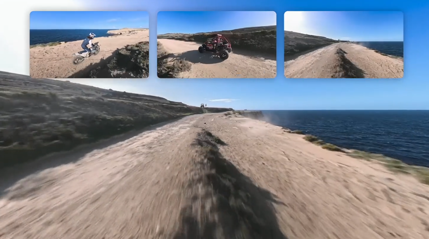 Antigravity A1の360度の自由度は、1回の撮影であらゆる視点を抑えることができます。もし撮り逃したとしても、巻き戻して映像をリフレーミングすることができます。