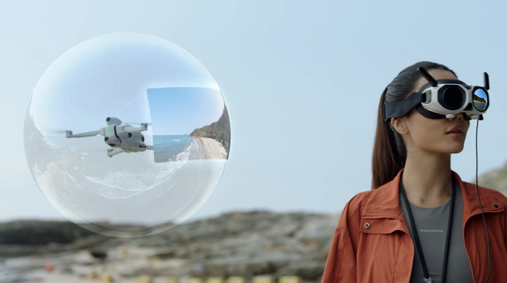 ドローンパイロットはゴーグルを装着し、まるでその場にいるかのようにヘッドトラッキングで360度自由自在に見渡すことができます。