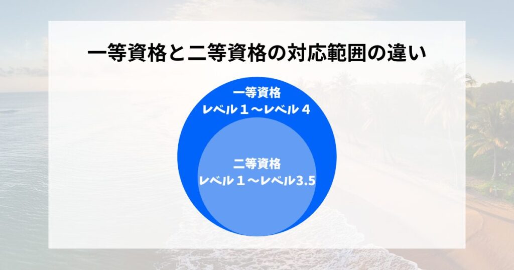 一等と二等の国家資格の主な違いは、それぞれが証明する飛行形態の範囲です。