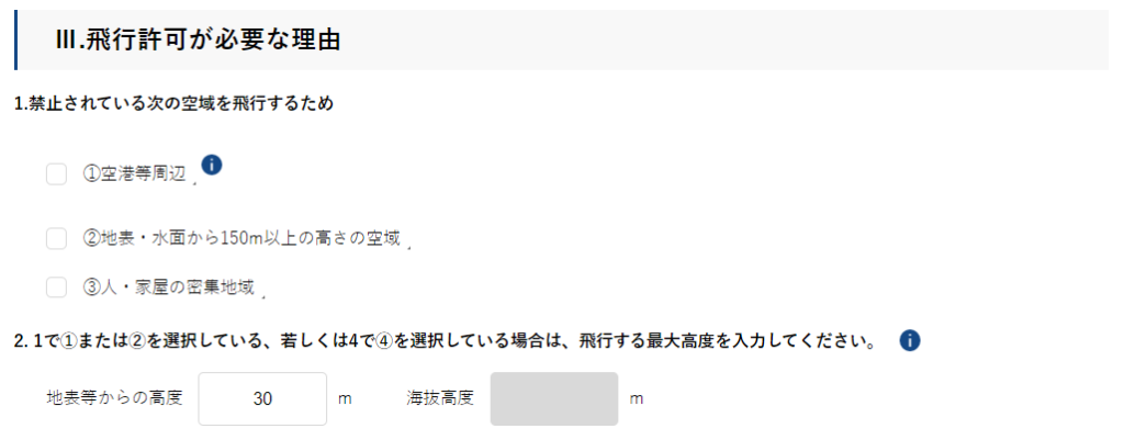 イベント上空の飛行は、飛行高度に応じて立入禁止区画の半径が決まっているので、最大飛行高度を指定する必要があります。