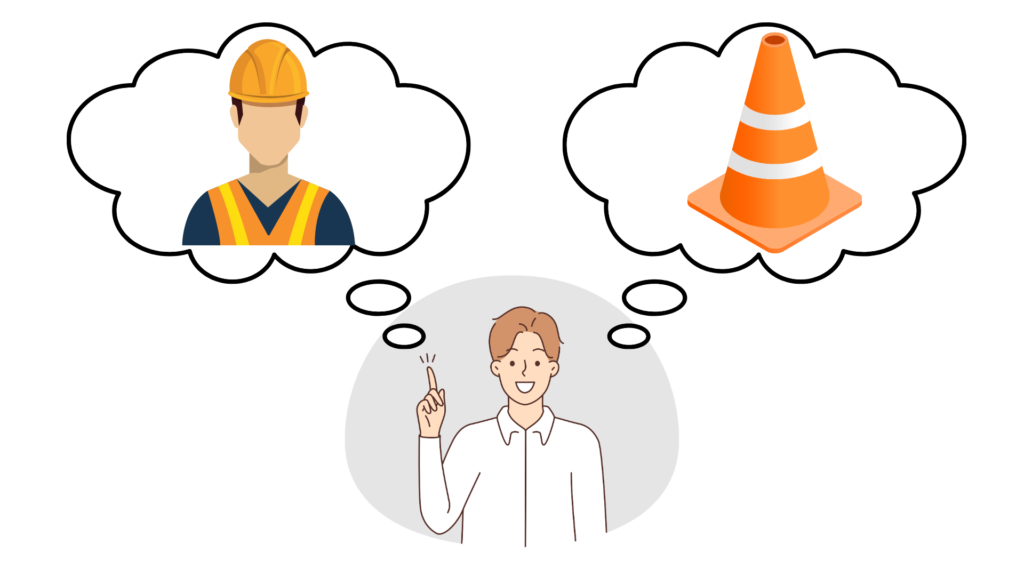 また、三角コーンなどで立入り禁止区画を設けたり、ビブスの着用したりしましょう。