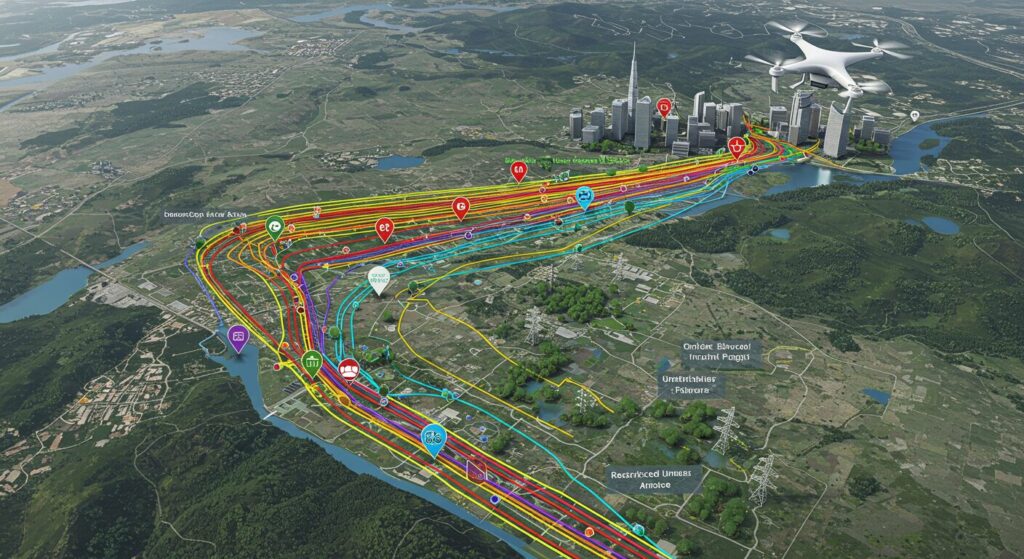 • 落下分散距離の考慮: 機体の重量や飛行速度、風速などを考慮し、万が一の墜落時に第三者に被害が及ばないよう区画を設定します。