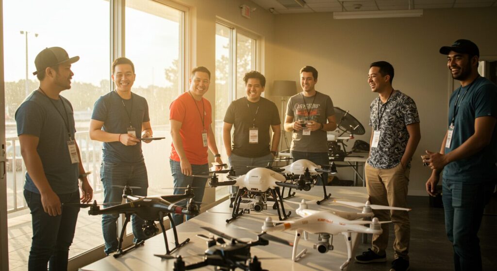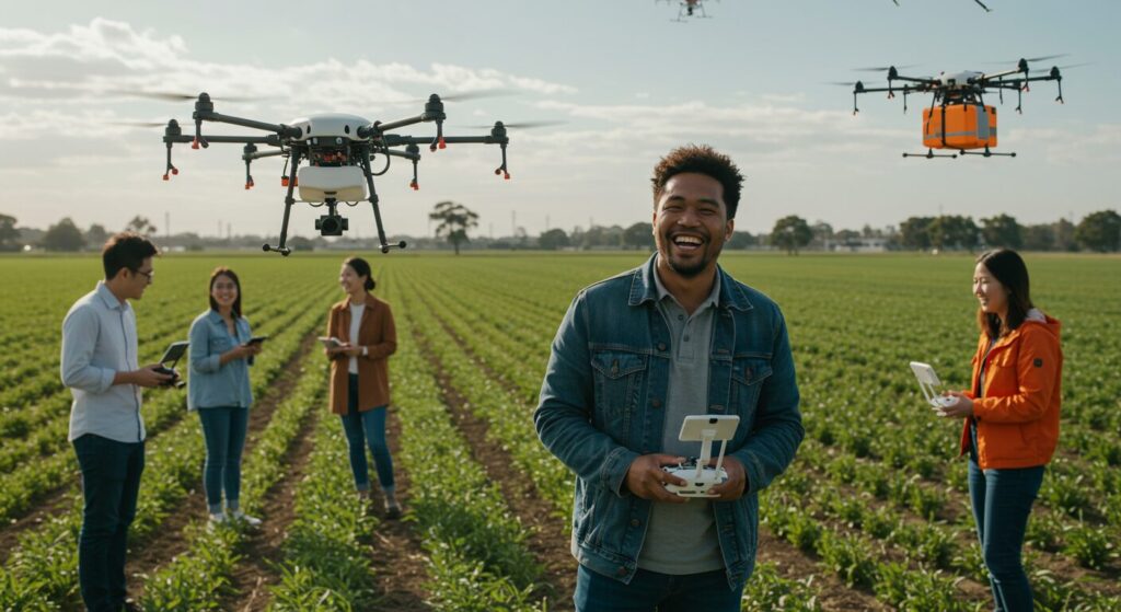 • どうやって始める?: まずは目視内飛行で基本をマスター。ドローンスクールやコミュニティで仲間と学び、ステップアップ!