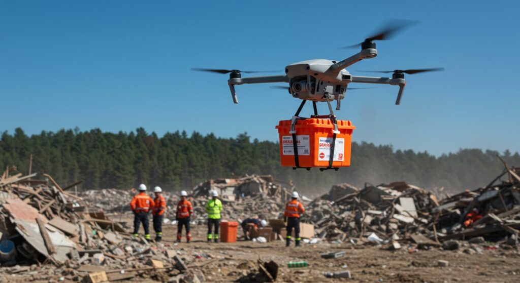 目視外飛行技術は、広範囲の調査・撮影や災害救助、物流支援、危険箇所の点検などに活用され、効率的な運用を実現します。