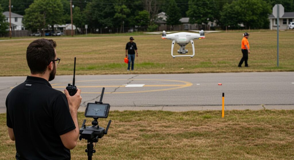 • 区画の設定: カラーコーンやロープを使用して飛行エリアを明確に区分します。