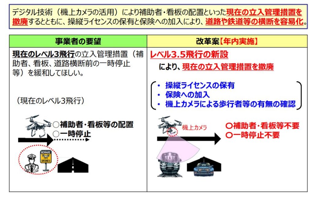 レベル3飛行を規制緩和しているのが大きな特徴です。