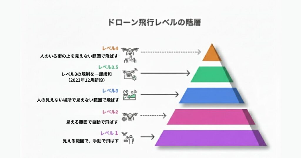 - 3. ドローンのレベル3、3.5、4飛行の違いは?