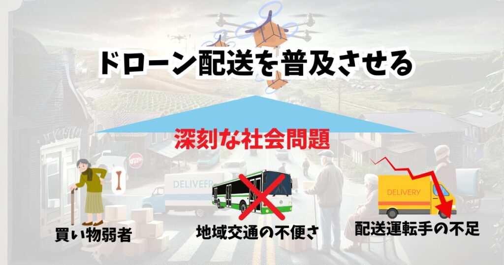 特に過疎地域などでは、物流網の維持が困難になりつつあり、ドローン配送への期待が高まっていました。
