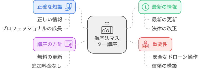 航空法マスター講座は、ドローンに関する航空法を網羅的に学ぶことを目的としたオンライン講座です。