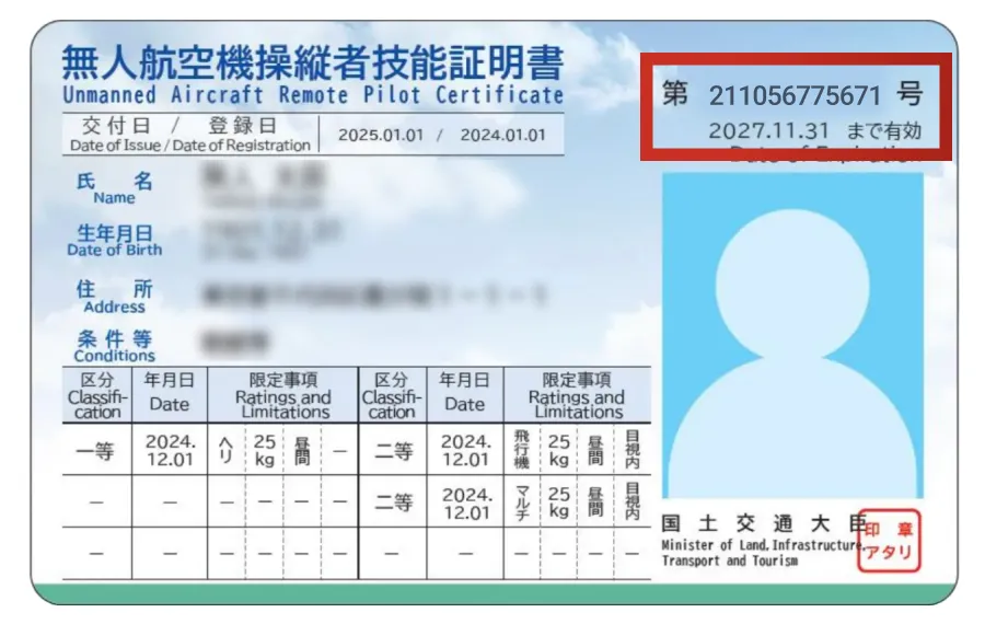 DIPS2.0での手続き完了後、更新されたドローン国家資格の証明書が交付されます。
